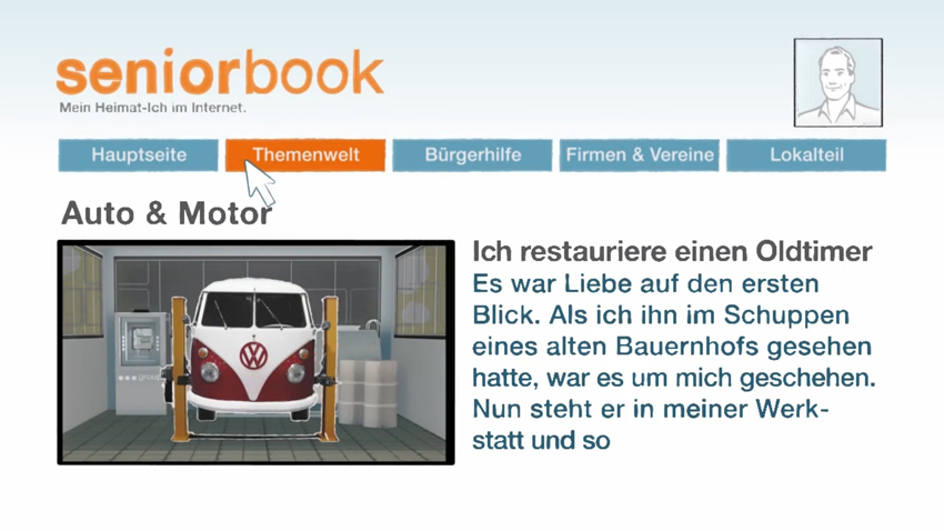 „Fast jeder hat doch Themen, in denen er Experte ist und Spaß daran hat, anderen seine Erfahrungen und Tipps weiterzugeben“, heißt es in einem Seniorbook-eigenen Video, in dem sich die Plattform vorstellt. Und das ist die Idee: Die Nutzerin, die Wandern und Natur liebt und ihre Heimat wie ihre Westentasche kennt, verrät anderen Nutzern kleine Geheimnisse, die in keinem Reiseführer stehen. Oder man veröffentlicht ein Hilfsprojekt auf der Plattform und gewinnt Aufmerksamkeit und Unterstützung durch die Community.
