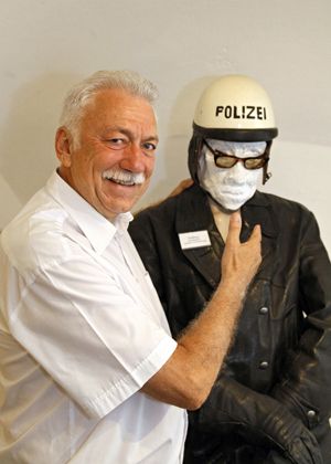 Daneben befindet sich ein Tresor, dem man ansieht, dass sich der Täter daran zu schaffen gemacht hat, ihn aber nicht aufschweißen konnte. Die kleinen, schwarzen Nummerntafeln der Spurensicherung erinnern an Tatort-Sendungen im Fernsehen. Der erste Eindruck täuscht: Das Blut ist »Theaterblut« und die gekrümmte Haltung des Opfers hat eine Visagistin des Fürther Theaters einer Schaufensterpuppe verliehen. »Der Tresor«, sagt Wilfried Dietsch, »stammt aber von einem echten Einbruch.« Alles andere hat die Fürther Mordkommission liebevoll arrangiert und in Szene gesetzt.