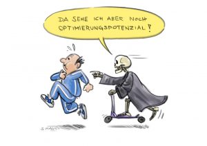 Da sollten wir uns nicht von einem Autor verunsichern lassen, der ein Buch zum Thema geschrieben hat (»Zonen der Selbstoptimierung. Berichte aus der Leistungsgesellschaft«). Felix Klopotek heißt dieser Autor. Und er mäkelt herum: »Wir verpflanzen ein totalitäres Regime von Leistungs- und Konkurrenzbewusstsein in uns. Aber dieses Regime ist brüchig. Denn so wenig sich das Selbst eindeutig bestimmen lässt, so wenig lässt sich von der Selbstoptimierung reden. Es existieren viele Selbstoptimierungen: Auf dem Gebiet der Familie, der Freizeit, der Arbeit, der Liebe – überall gibt es was zu optimieren. Dabei geraten diese Techniken der Internalisierung von Leistungsnormen miteinander in Konflikt. Jeder weiß, wie schwer Arbeit, Familie, Liebe, Sport, Gesundheit miteinander zu versöhnen sind. Eigentlich gar nicht. Und so schießt am Ende die Selbstoptimierung in ihrer mannigfaltigen Gestalt über sich selbst hinaus. Sie wird an ihrem Erfolg zugrunde gehen.«
