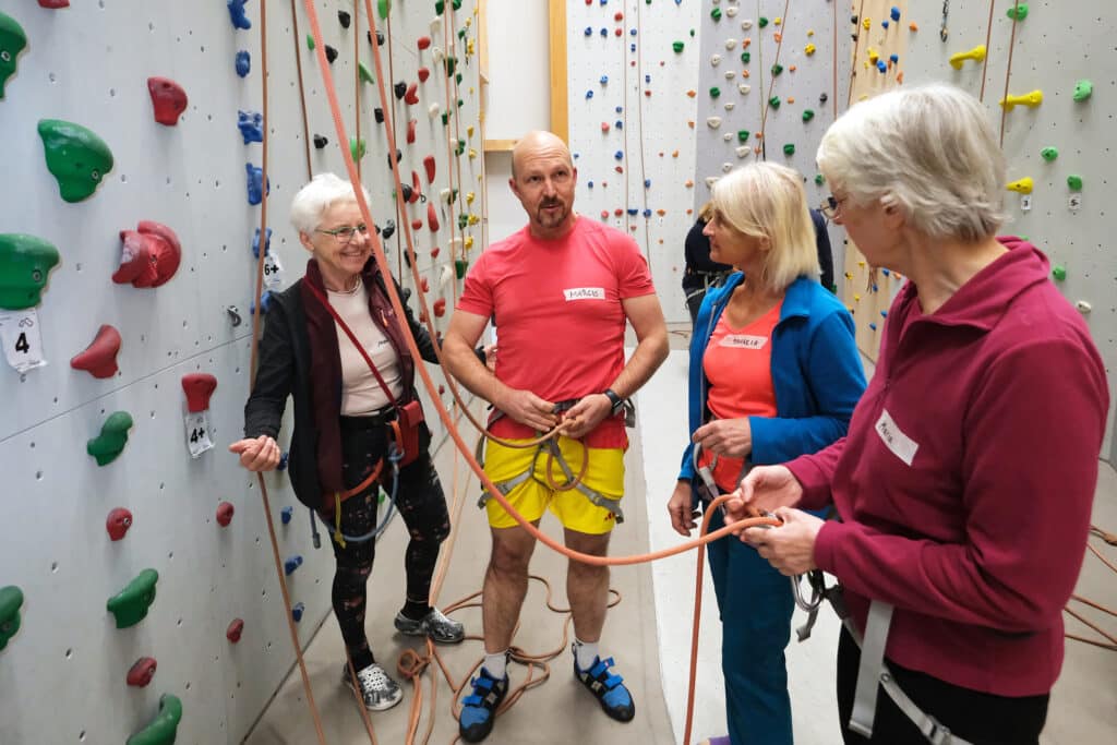 Wer die Halle der Nürnberger Firma Bambule im Sandreuther Industriegebiet betritt und noch nie geklettert ist, ist erst einmal überwältigt: Die steile Wand geht…